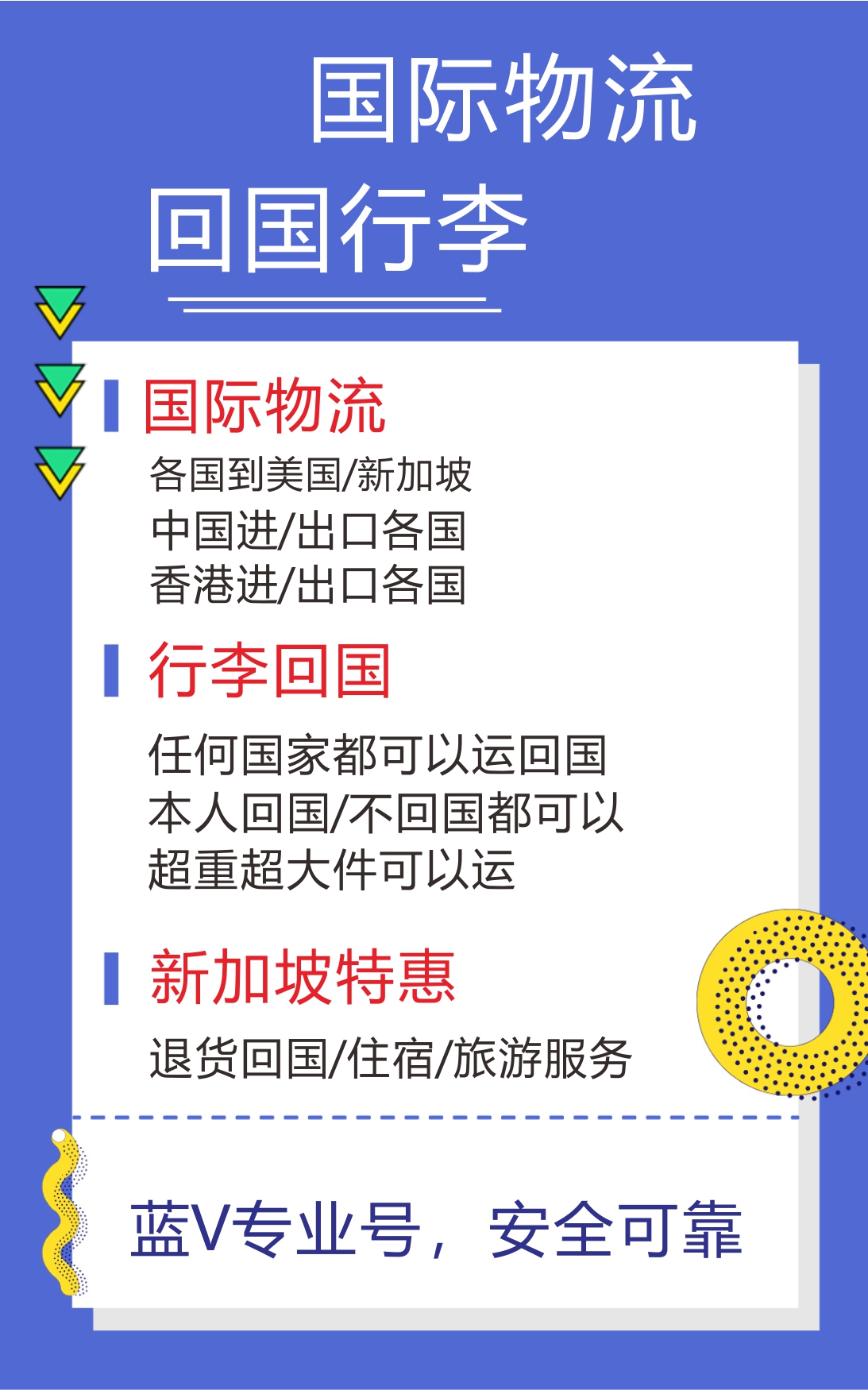 新加坡行李回中國,本人回國21公斤起,6.8新元/公斤,F(xiàn)EDEX官方渠道,免稅包清關,免費上門提貨,具體說明>>>>